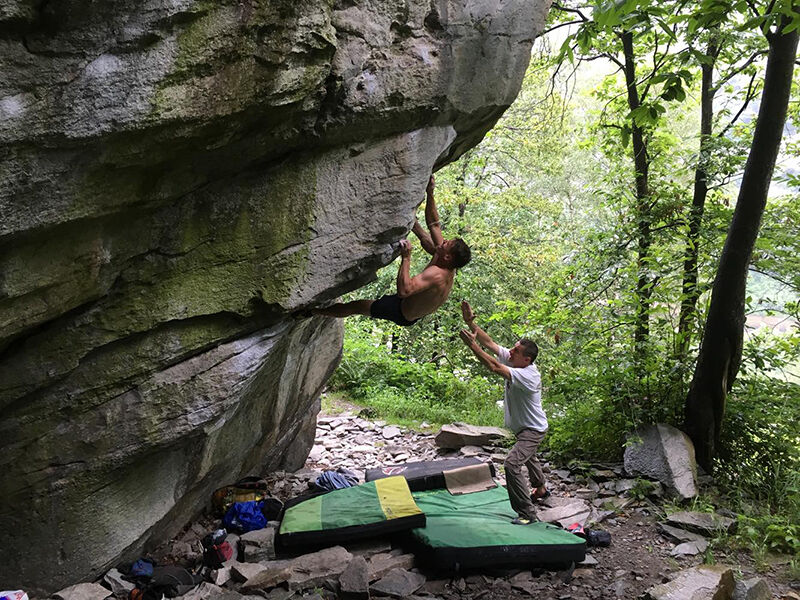 Zo heb je niet standaard een mat onder je liggen, moet je weten hoe je kunt afklimmen en is spotten ineens een ding. Anders dan binnen, is het buiten verstandig, altijd met een maatje te boulderen. Voor het verschuiven van je crashpads, voor het spotten en natuurlijk voor de gezelligheid. We geven je 10 tips om buiten te boulderen.