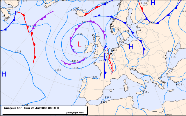 Ook voor een koufront uit (dus nog in de warme lucht) raakt de atmosfeer soms al turbulent en ontstaan er stijgende luchtbewegingen. Dit gebeurt bij zogenaamde convergentielijnen, die tot een paar honderd kilometer voor het koufront uit kunnen ontstaan. Deze stijgende luchtbewegingen kunnen soms tot bijzonder heftige onweersbuien leiden. Op 23 juli 1996 doorkruiste een sterke convergentielijn in de namiddag in slechts drie uur tijd heel Zwitserland. De heftige weersomslag heeft toen vier alpinisten het leven gekost. Het bijbehorende koufront passeerde toen pas in de loop van de avond.