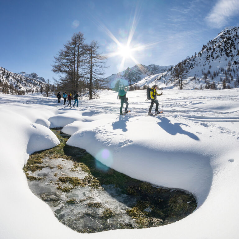 Hoe weet je of paden veilig zijn en waar vind je die? In de Alpen en het middengebergte liggen in de winter veel winterwandelpaden. Deze zijn geprepareerd en gemarkeerd. Dat betekent, dat er een machine overheen is gegaan, waardoor de sneeuw is aangestampt. Eigenlijk heb je op deze paden geen sneeuwschoenen nodig. Deze paden zijn ook gecontroleerd wat betreft de lawineveiligheid. Blijf echter wel goed op het pad. Winterwandelpaden zijn een mooi oefenterrein als je geen of weinig kennis hebt van sneeuw en lawines. Nadeel van deze routes is dat ze veelal in skigebieden of bij dorpen liggen.