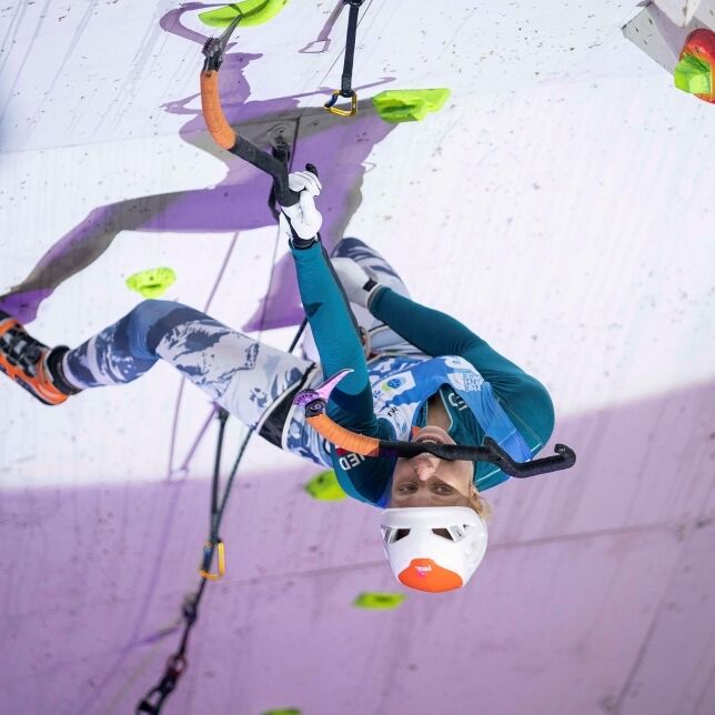 Vol aangemoedigd door ‘eigen publiek’ bemachtigen ijsklimmers Dennis van Hoek en Marianne van der Steen de zilveren medaille van de UIAA Ice Climbing Continental Open Utrecht 2024 én de nationale ijsklimtitel. Het goud is 2x voor Zwitserland.